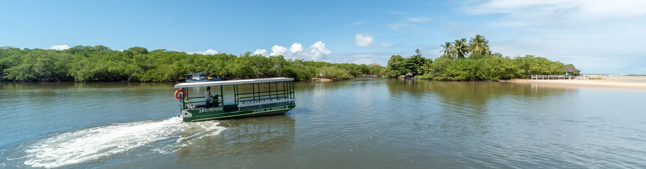 Um passeio imperdível! O trajeto leva os visitantes por manguezais, bancos de areia e ilhotas, com paradas para banho e fotos. É possível contratar os passeios diretamente no píer das Dunas de Marapé ou com agências locais. Os valores ficam na faixa de R$ 40 a R$ 60 por pessoa, com duração média de 1h30 a 2 horas.