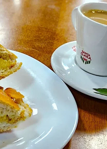 A casa oferece café da manhã, almoço e jantar, com o famoso lanche de pão com manteiga na chapa