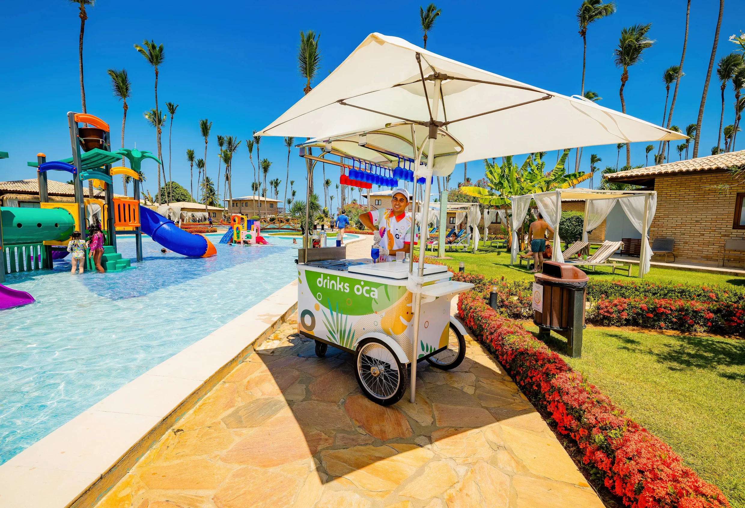 Mas se por algo destaca o Grand Oca Maragogi Beach & Leisure Resort, além de sua localização em um enclave paradisíaco, é por suas instalações. Nosso resort possui várias piscinas distribuídas ao longo de quase 400 metros de extensão com diferentes profundidades e em frente aos bangalôs. Um salão de beleza que abre 7 dias por semana e oferece serviços de manicure e cabeleireiro. Serviço de enfermaria para primeiros socorros. Várias lojas onde você pode comprar lembranças da viagem, moda ou artesanato local. Baby area para atender hóspedes com crianças pequenas. Kids Clube para crianças de 4 anos com muitas brincadeiras e atividades, sempre sob a supervisão de nossa equipe de entretenimento infantil.
