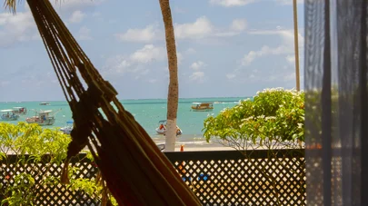Varanda individual com rede, reservada e vista mar