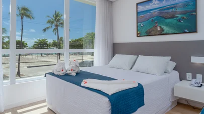 O hotel oferece 204 quartos: Premium (até 4 pessoas), Frente Mar (vista para o mar), Superior (varanda e pôr do sol), Panorâmica (vista 180º) e Terraza (cobertura do hotel).