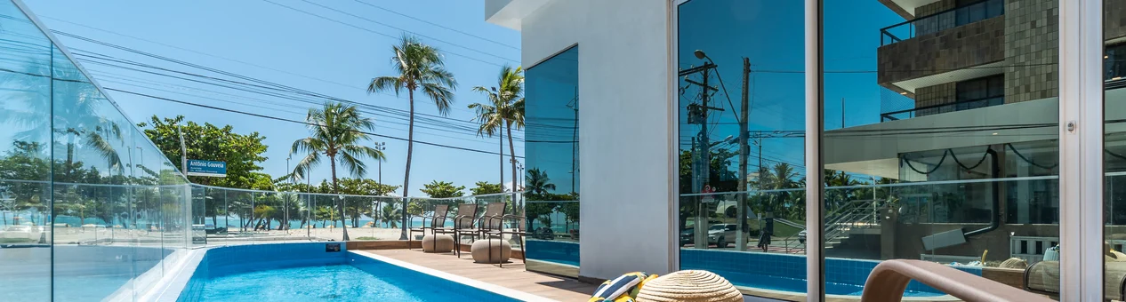 Em frente à Praia de Jatiúca, o hotel oferece vista lateral para o mar em todas as suítes, ampla área de lazer e localização privilegiada, perto de restaurantes, farmácias e foodparks.