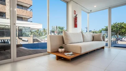 Localizado na orla de Maceió o hotel é um empreendimento recém inaugurado que conta com uma decoração moderna e acolhedora.