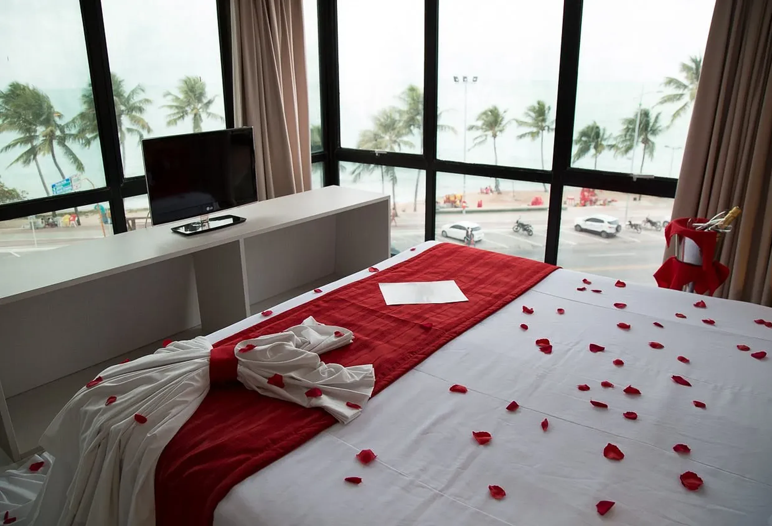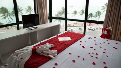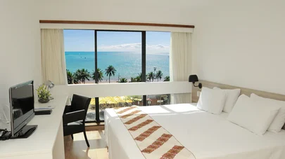 Possuímos 204 quartos, o Premium é o familiar que acomoda até 4 pessoas, o Frente Mar acomoda até 3 pessoas e possui vista para o mar da Ponta Verde, o Superior possui uma varanda e nele se dá pra contemplar ainda mais nosso pôr do sol. A Panorâmica tem um quê de vista em 180º e o Terraza é a cobertura do hotel. É você se sentindo um rei.