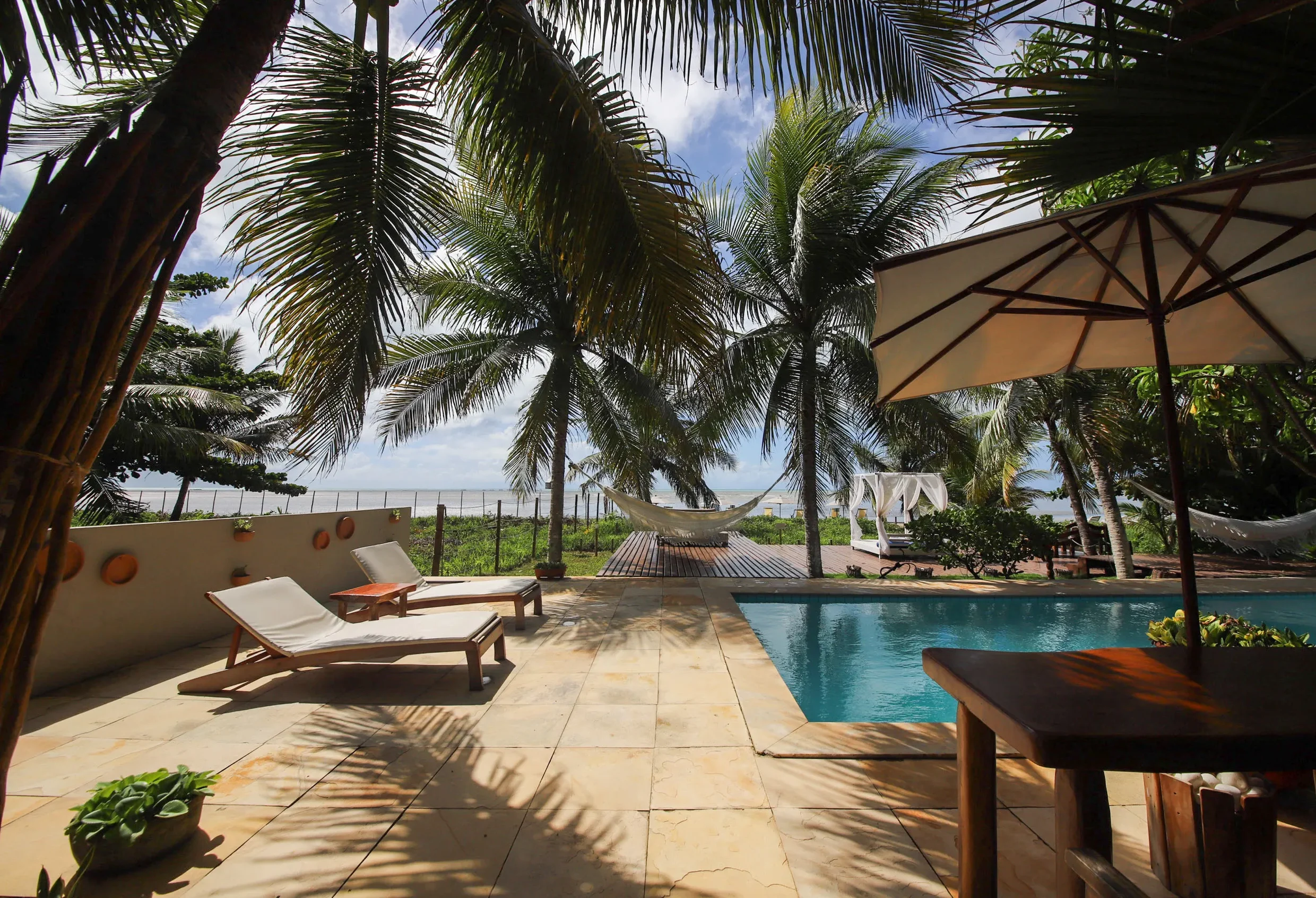No estilo casa de praia, a Vila Sagui se destaca em meio a tanta natureza, seu lindo jardim e os coqueirais que fazem conexão com o mar logo em frente, faz deste lugar o cenário perfeito para quem adora desconectar da correria do dia a dia.